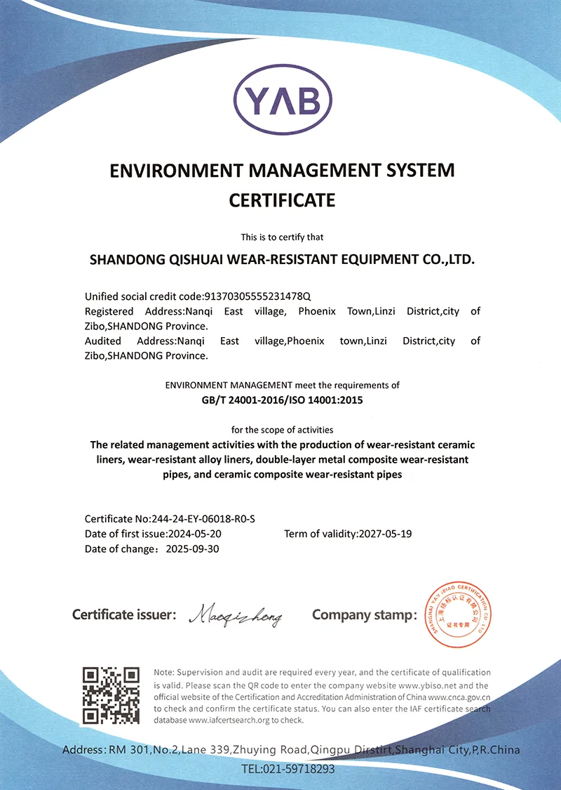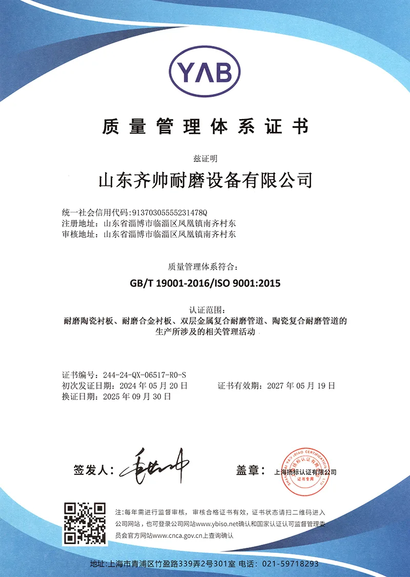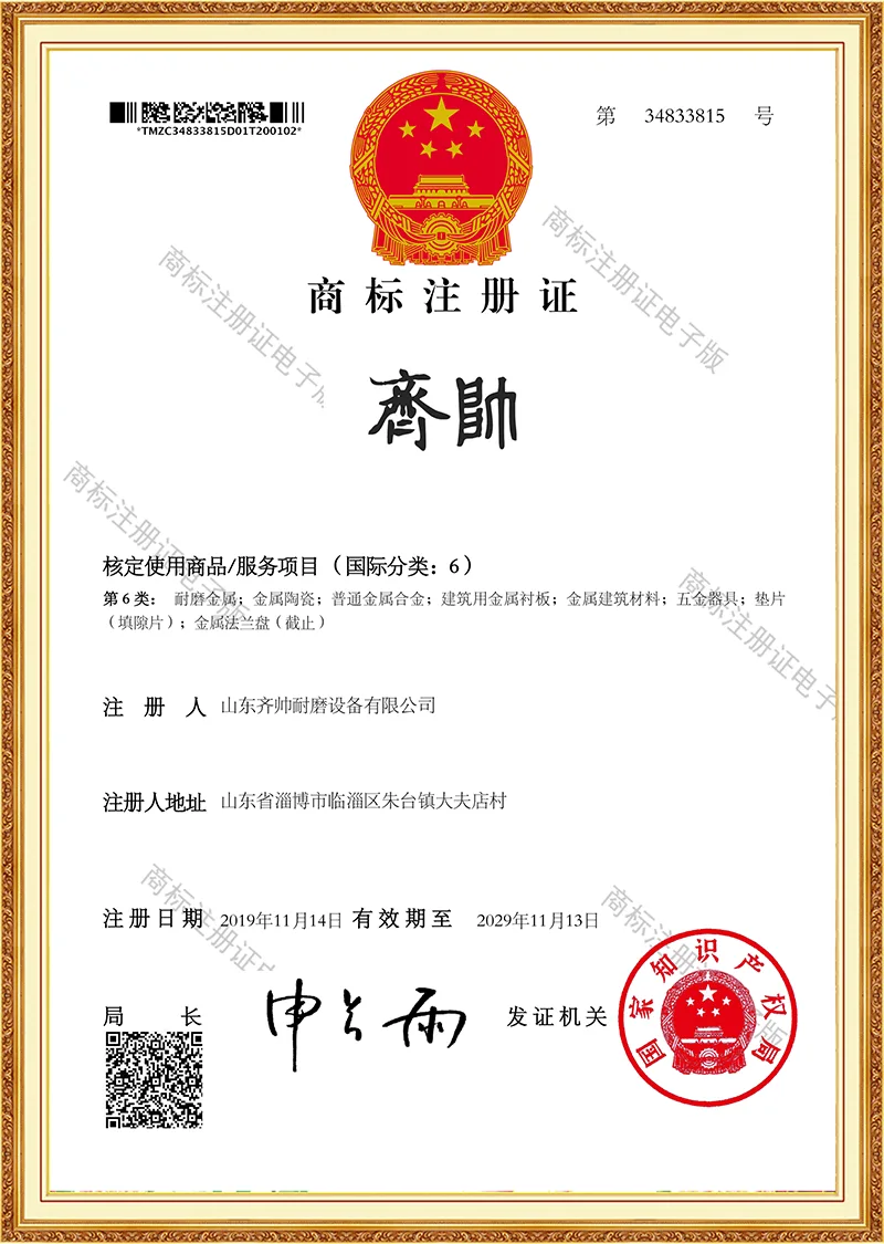 Podjetje ima certifikat ISO9001 in je prejelo številne patente za uporabne modele, s čimer si je prislužilo priznanje za svojo tehnološko moč. Imamo lastno tovarno in smo že več kot desetletje globoko vpleteni v industrijo izdelkov, odpornih proti obrabi.