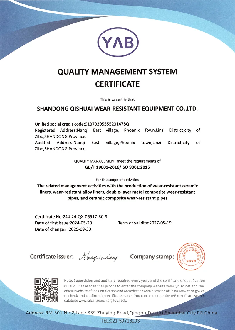 Poleg tega nenehno izboljšujemo lastno raven in aktivno izvajamo inovacije. Podjetje je razvilo vrsto materialov in tehnologij, odpornih proti obrabi, s pravicami intelektualne lastnine ter prejelo dobre ocene uporabnikov in tudi bogate donose. Vedno se držimo koncepta oblikovanja visoke odpornosti proti obrabi in dolge življenjske dobe. Najprej izberemo visoko zmogljive materiale, kot sta zlitina kromovega karbida in keramika z visoko gostoto aluminijevega oksida. Načela oblikovanja: ujemanje delovnih pogojev, visoka zmogljivost, varnost in zanesljivost. Če imate svetovni problem, ki ga Krupp ne more rešiti, pridite v Qishuai!