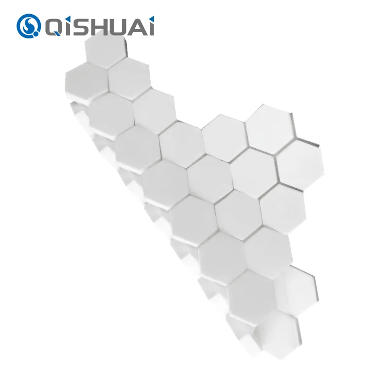 Visokokakovostni Hex Alumina Ceramic Mosaic podjetja Shandong Qishuai Wear-Resistant Equipment Co., Ltd., kot je prikazano na sliki, ima značilno šestkotno obliko, ki jih ločuje od običajnih kvadratnih ali okroglih ploščic. Vsaka heksagonalna keramična mozaična ploščica iz aluminijevega oksida se ponaša z gladkimi, tekočimi robovi z jasno vidnimi izvrstnimi detajli.