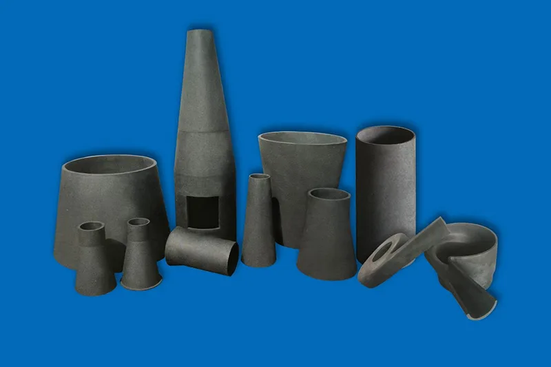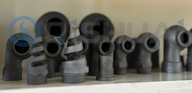 Šobe iz silicijevega karbida pogosto najdemo v sistemih za odstranjevanje prahu, pršenje, razžveplanje in zgorevanje kot dele, odporne proti obrabi. Poleg založenih šob s preprostim profilom lahko Qishuai izpolni tudi zahteve kupcev z oblikovanjem novih šob s spremembami kota pršenja, pretoka in odpornosti proti koroziji, če je to potrebno. SiC podaljša čas delovanja opreme in zniža stroške življenjske dobe.